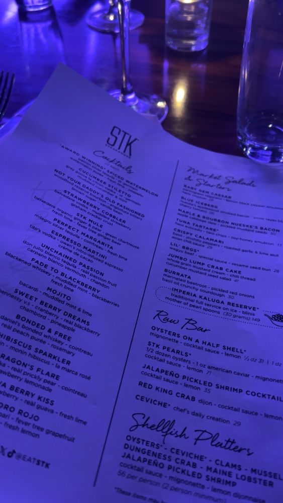 Welcome to STK Steakhouse Washington, a culinary gem nestled in the Marriott Marquis that seamlessly combines a vibrant atmosphere with an exceptional dining experience. The menu is a testament to indulgence, featuring standout items such as the Jalapeño Pickled Shrimp Cocktail and the artistic Tuna Tartare, both presenting a fresh take on seafood. For meat lovers, the Wagyu Beef Sliders and the exquisite Porterhouse promise to satisfy any palate.